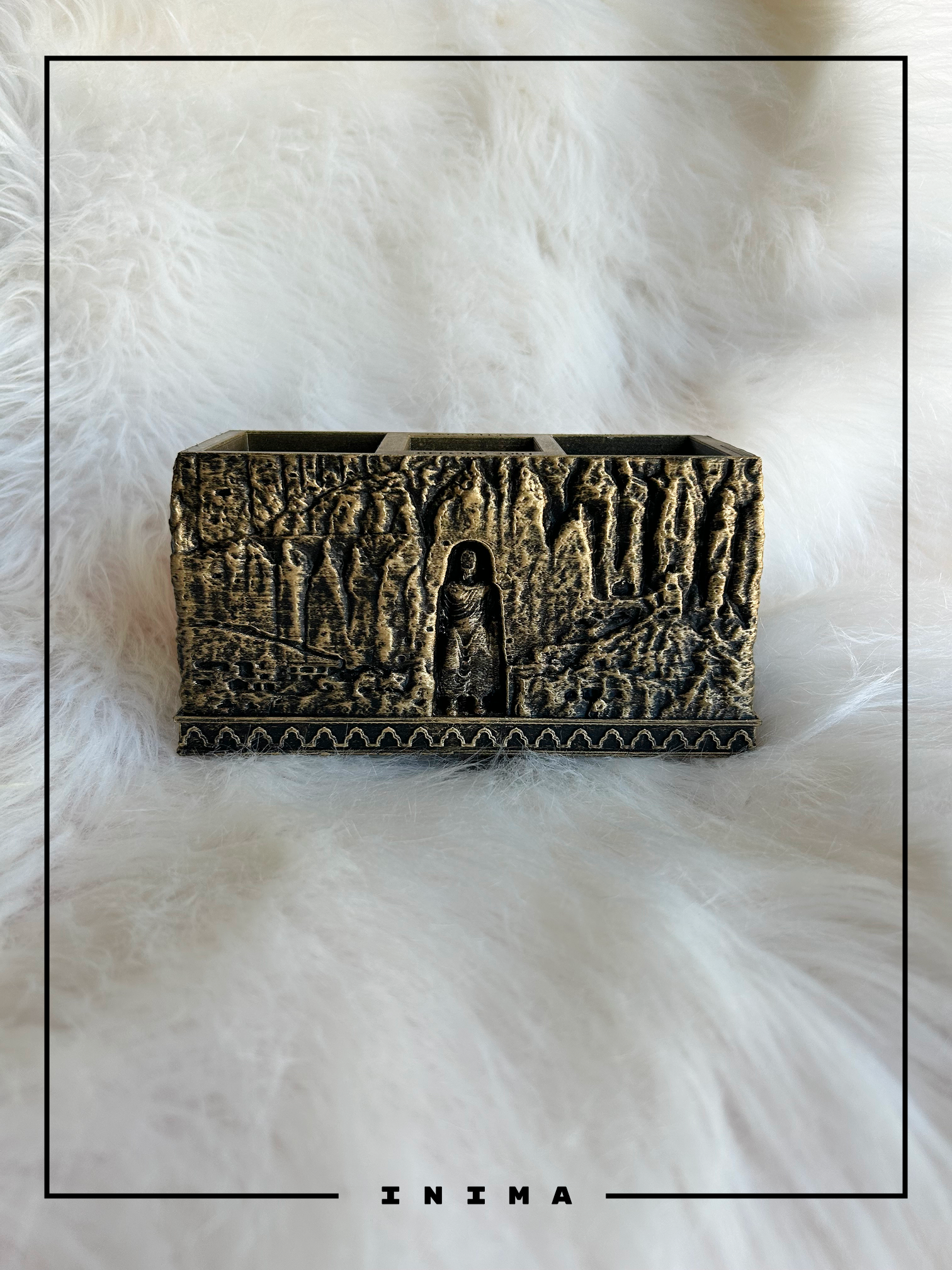 Honor history, resilience, and art with this one-of-a-kind 2-in-1 desk organizer inspired by the legendary Bamiyan Buddhas of Afghanistan.